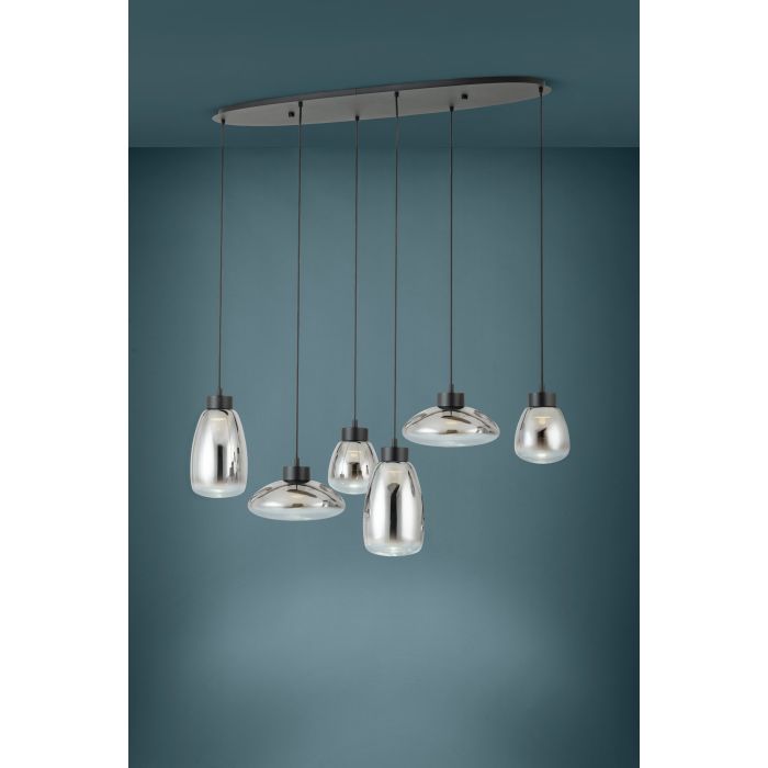 Rippvalgusti SARNARRA-EG-390301, LED 6 x 5,4W, 2700K Valgusvoog: 3060lm, Metall, Klaas, Must, Läbipaistev, Must, Kõrgus 150 cm, Pikkus 128 cm, Laius 54,5 cm; Hämardatav; IP20