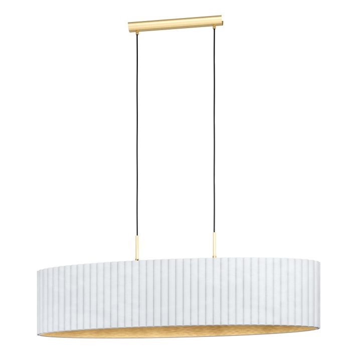 Rippvalgusti TAMARESCO-EG-39764, 2 pirni E27 40W, komplekt ei sisalda pirni, Metall, Samet, Harjatud messing, Valge, Kuld, Kõrgus 150 cm, Pikkus 102 cm, Laius 30 cm; IP20