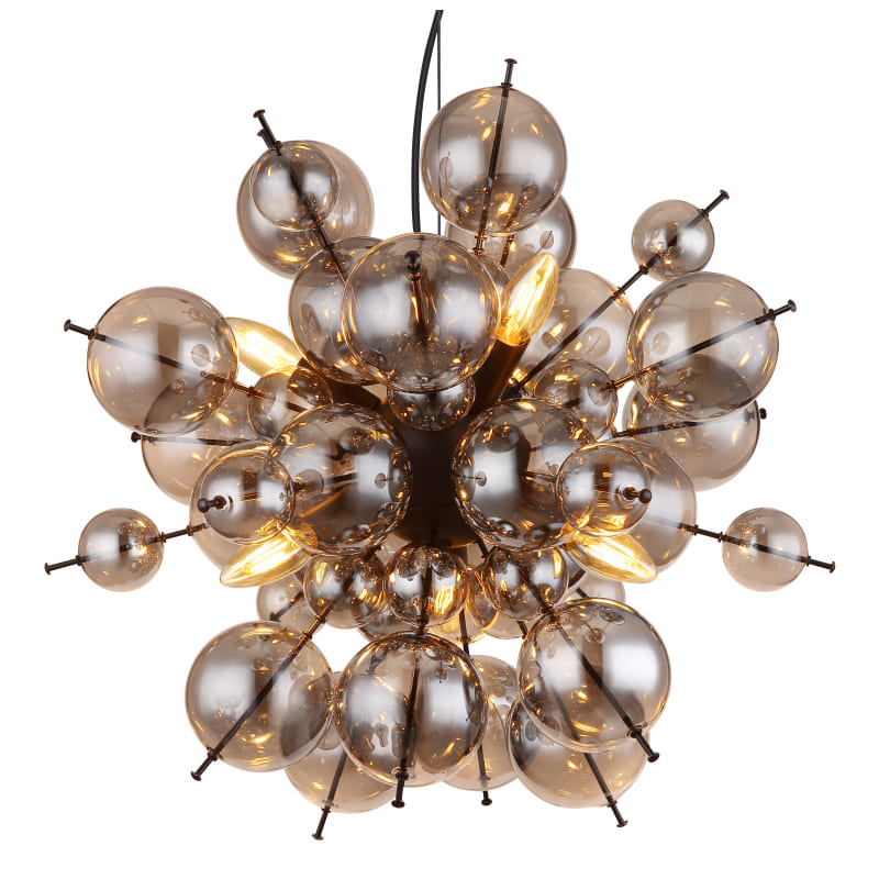 Ripplamp UDO-GL-15633HS, GLOBO, Austria, 6 pirni E14 25W, Diameeter 55cm, Kõrgus 120 cm, IP20, Metall, Klaas, Must, Suitsu