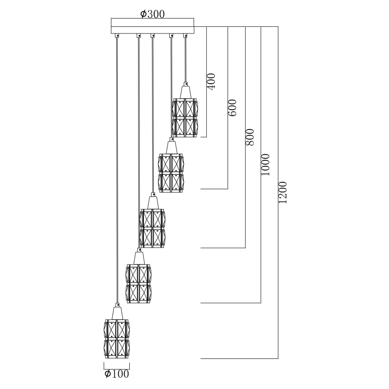 Ripplamp, rippvalgusti WOLLI, Nikkel matt, 5 pirni E14, 40W, komplekt ei sisalda pirni, Materijal – Metall, Klaas. Kõrgus 120cm, IP20