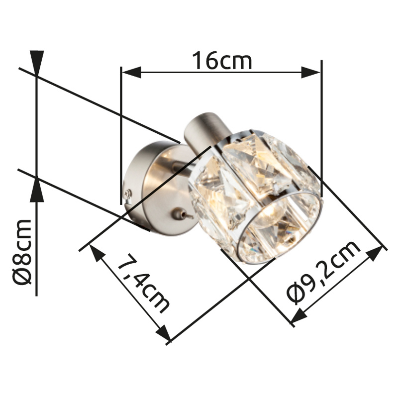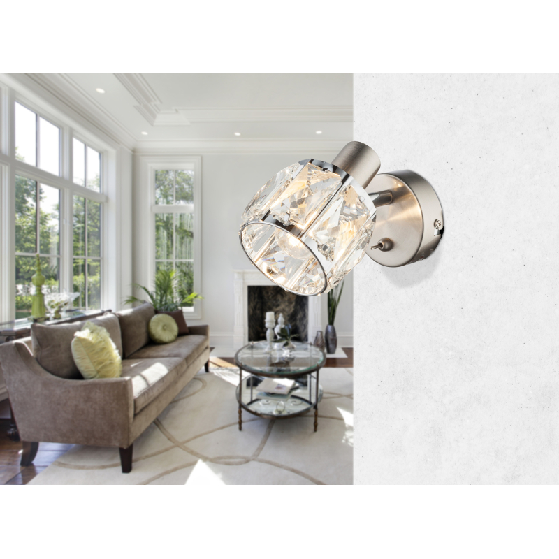 Seinalamp, seinavalgusti Kris-GL-54356-1, metall nikkel matt, metall, läbipaistvad klaaskristallid, lüliti, 92x125mm, pirn 1x E14 40W ei ole komplektis.