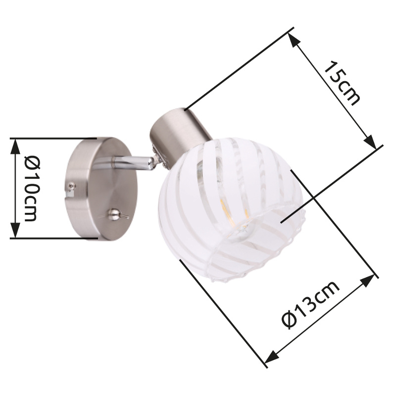 Seinalamp, seinavalgusti Willy-GL-54025-1, metallist nikkelmatt, klaas läbipaistev, valge, lüliti,, 130x150mm, pirn 1x E27 40W ei ole komplektis.