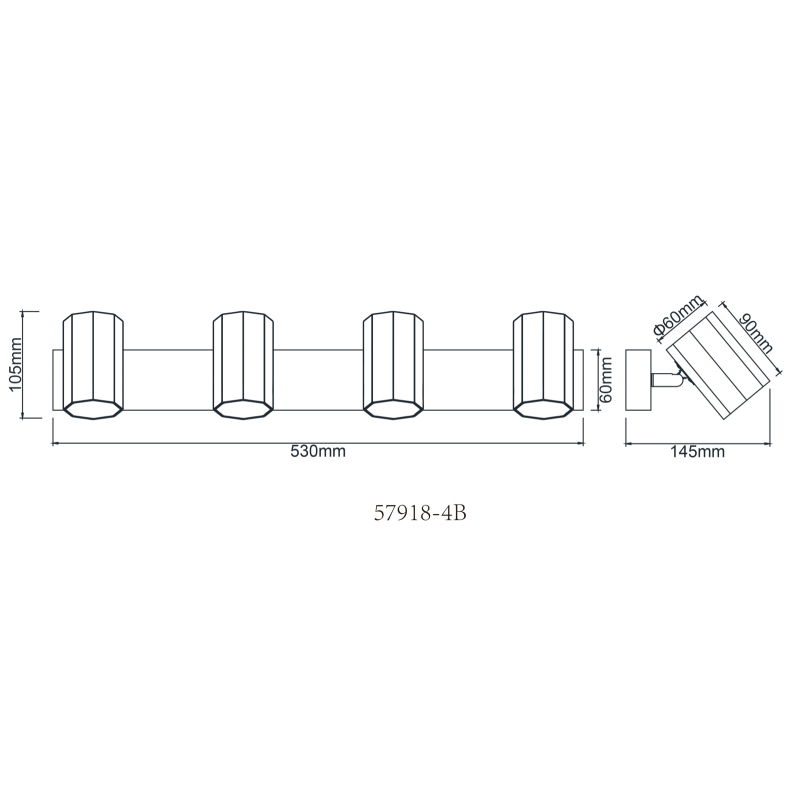 Kohtvalgusti JAMES-GL-57918-4B, GLOBO, Austria, 4 pirni GU10 25W, Kõrgus 14,5cm, Laius 6cm, Sügavus 53cm, IP20, Metall, Must