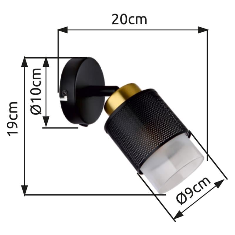 Kohtvalgusti OLGA-GL-15709-1, GLOBO, Austria, 1 pirn E27 40W, Laius 10 cm, Kõrgus 19 cm, IP20, Metall, Klaas, Must, Valge