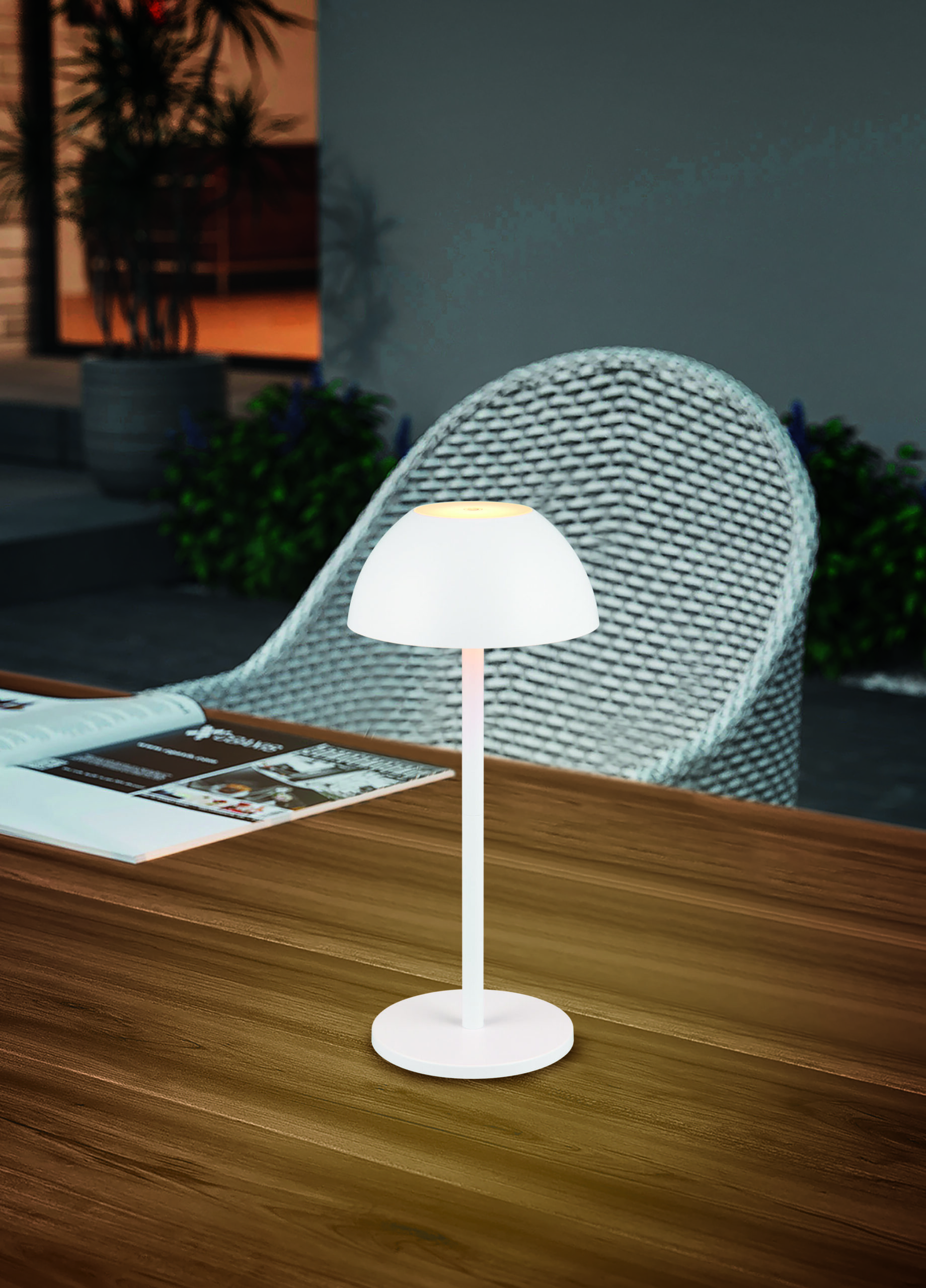 Laualamp RICARDO-TRL- R54106131, 1x SMD, 1,7W · 1x 240lm, 3000K, Plastik, Matt valge, Kõrgus 30 cm, Diameeter 13 cm, IP 54, Üles ja alla valgustus, USB ühendus, 4 taseme puutefunktsioon, Töötab laetava akuga, Trio, Tarneaeg kuni 21 päeva