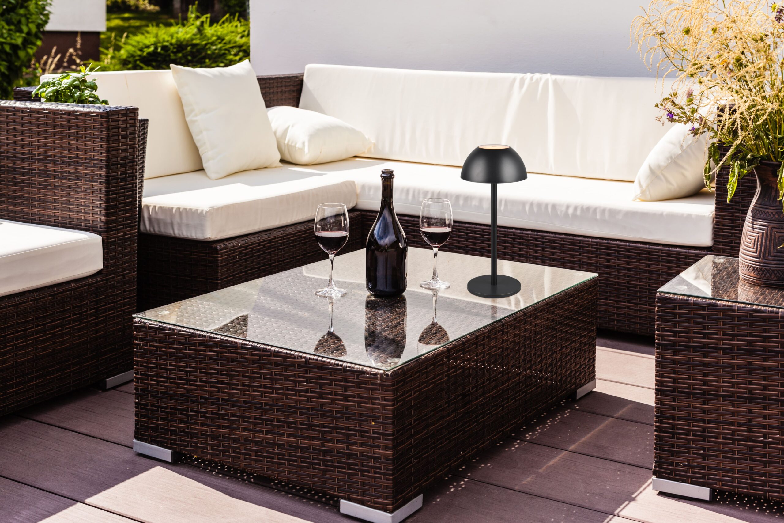 Laualamp RICARDO-TRL- R54106132, 1x SMD, 1,7W · 1x 240lm, 3000K, Plastik, Must matt, Kõrgus 30 cm, Diameeter 13 cm, IP 54, Üles ja alla valgustus, USB ühendus, 4 taseme puutefunktsioon, Töötab laetava akuga, Trio, Tarneaeg kuni 21 päeva