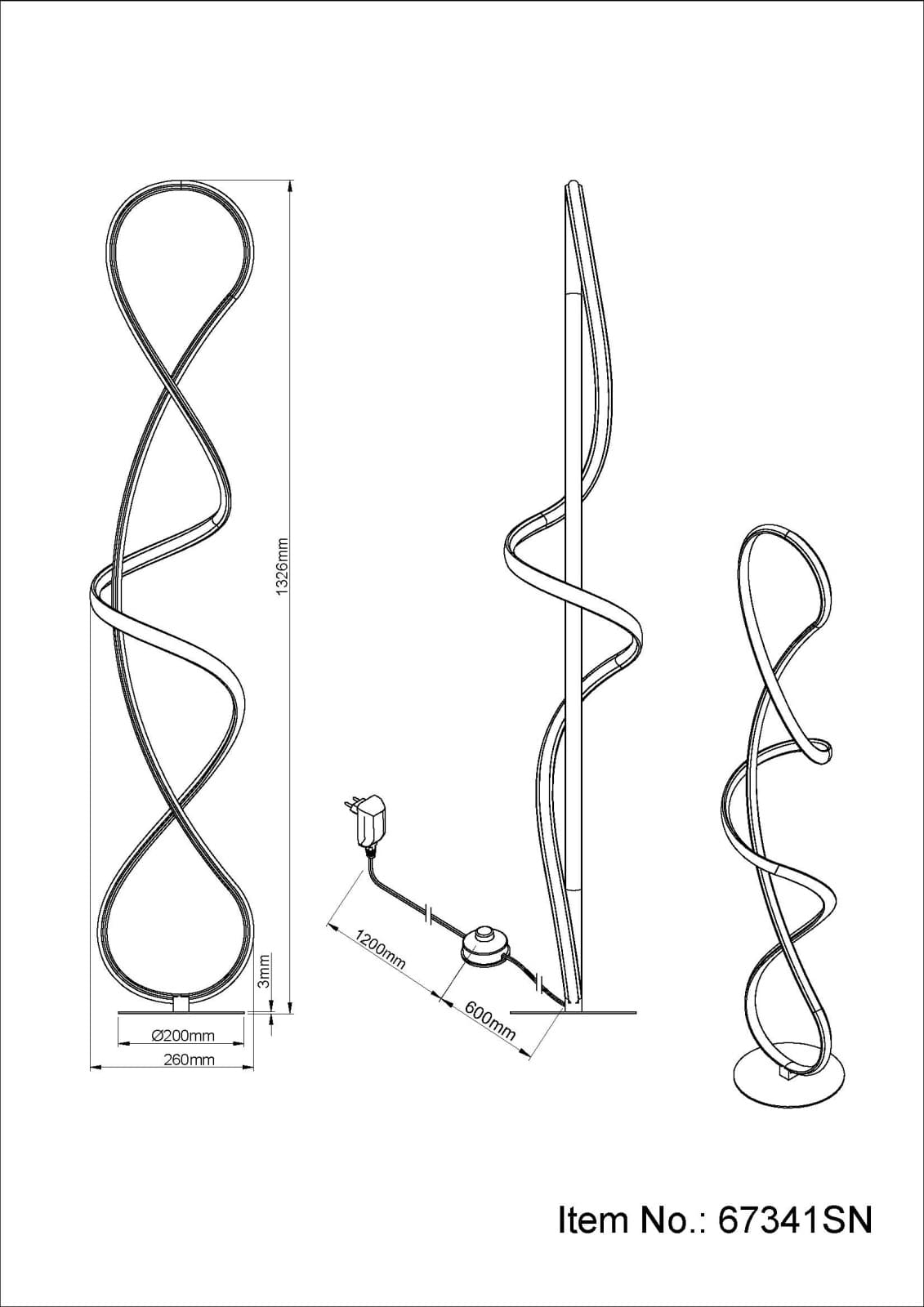 Põrandalamp LED SWIRL-GL-67341SN, GLOBO, Austria, LED 36W, Värvustemperatuur 3000K, Valgusvoog 3860lm, Kõrgus 132,5cm, Laius 20cm, Sügavus 26cm, IP20, Metall, Nikkel, Läbipaistev