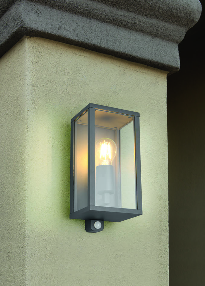 Seinalamp GARONNE-TRL- 201869142, 1x E27 · max. 60W, komplekt ei sisalda pirni, Alumiinium, Antratsiit, Laius 14 cm, Kõrgus 29 cm, IP44, Liikumisandur, Trio, Tarneaeg kuni 21 päeva,