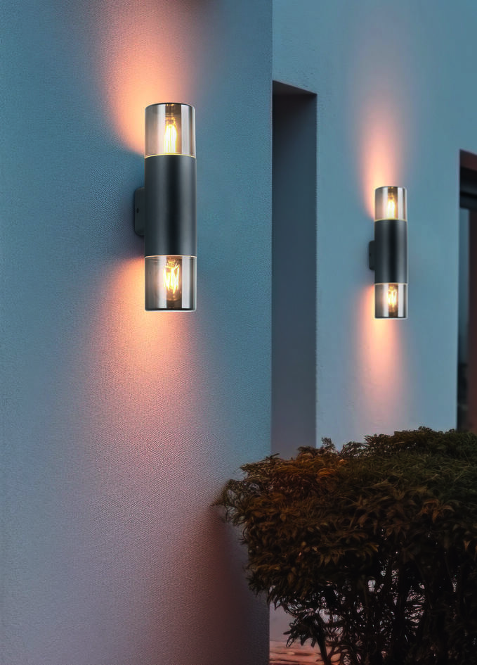 Seinalamp HOOSIC-TRL- 224060232, 2x E27 · max. 28W, komplekt ei sisalda pirni, Alumiinium, Must matt, Laius 8 cm, Kõrgus 33 cm, IP44, Üles ja alla valgustus, Tarneaeg kuni 21 päeva,
