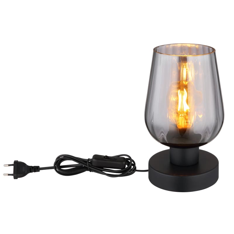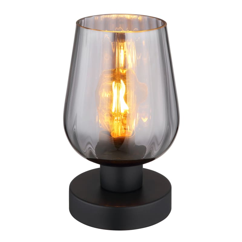Laualamp RYAN-GL-15627T, GLOBO, Austria, 1 pirn E27 40W, Diameeter 13,5cm, Kõrgus 22 cm, IP20, Metall, Klaas, Must, Suitsu