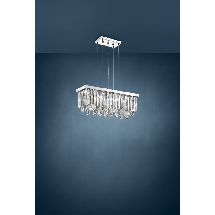 Rippvalgusti CALAONDA-EG-93422, 7 pirni G9-ECO 33W, komplekt ei sisalda pirni, Metall, Klaas, Kroom, Läbipaistev, Kõrgus 110 cm, Pikkus 69 cm, Laius 23 cm; IP20