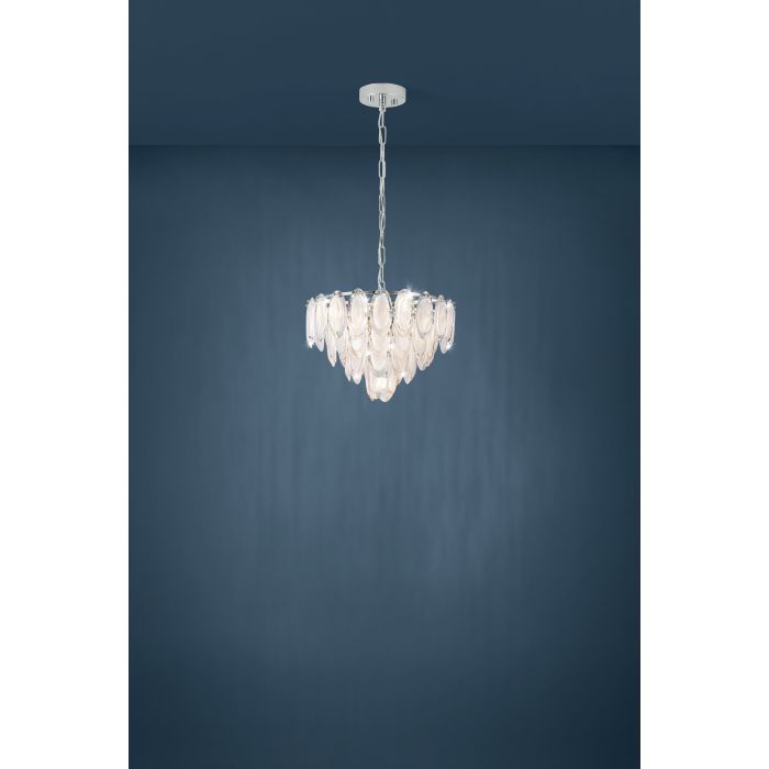 Rippvalgusti CARVARIO-EG-39721, 7 pirni E14 40W, komplekt ei sisalda pirni, Metall, Klaas, Kroom, Läbipaistev, Kõrgus 110 cm, Diameeter 48,5 cm IP20