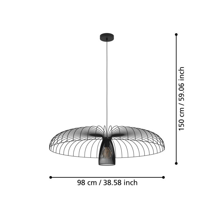 Rippvalgusti CHAMPERICO-EG-390217, 1 pirn E27 60W, komplekt ei sisalda pirni, Metall, Must, Kõrgus 150 cm, Diameeter 98,5 cm IP20