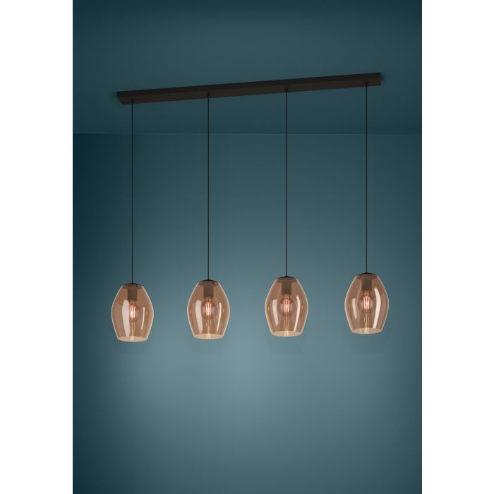 Rippvalgusti ESTANYS 1-EG-390162, 4 pirni E27 40W, komplekt ei sisalda pirni, Metall, Klaas, Must, Läbipaistev, Pruun, Kõrgus 150 cm, Pikkus 124 cm, Laius 19 cm; IP20