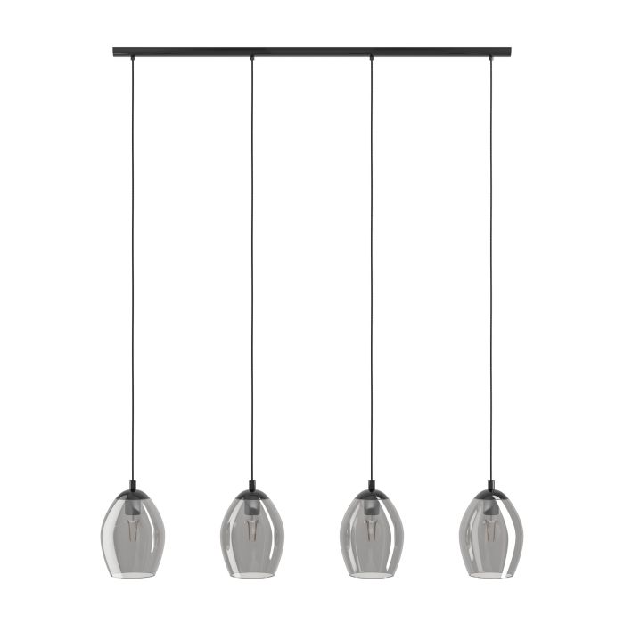 Rippvalgusti ESTANYS-EG-39566, 4 pirni E27 60W, komplekt ei sisalda pirni, Metall, Klaas, Nikkel, Must, Kõrgus 150 cm, Pikkus 113 cm, Laius 18,5 cm; IP20