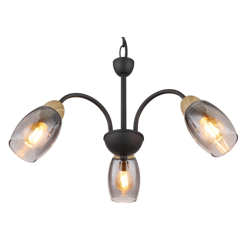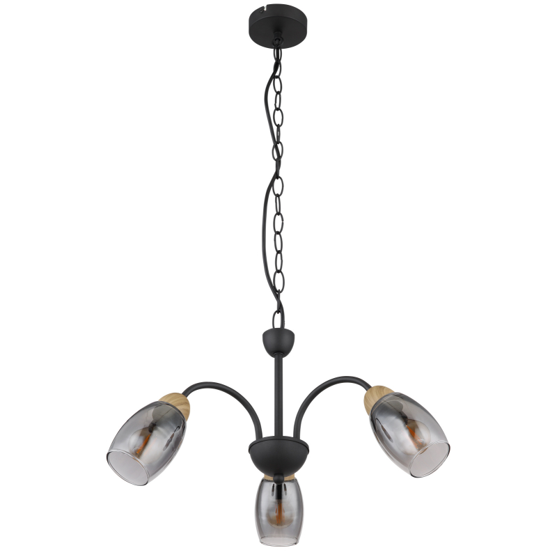Ripplamp Gerly-GL-60297-3H 3 pirni E14 25W komplekt ei sisalda pirni; Metall, Klaas, Must, Suitsuklaas, IP20, Kõrgus 120cm, Diameter 47cm