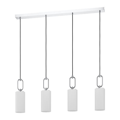 Rippvalgusti MAJANA-EG-390129, 4 pirni E27 40W, komplekt ei sisalda pirni, Metall, Klaas, Kroom, Valge, Kõrgus 150 cm, Pikkus 101 cm, Laius 11 cm; IP20